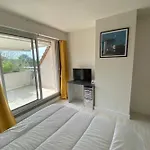Une cuisine complète a un micro-ondes et un réfrigérateur pour préparer les repas. Pour les repas, les hôtes peuvent déguster des spécialités de la cuisine européenne à El Chaco. L'arrêt de bus Gare SNCF Les Pins est dans un rayon de 600 mètres.